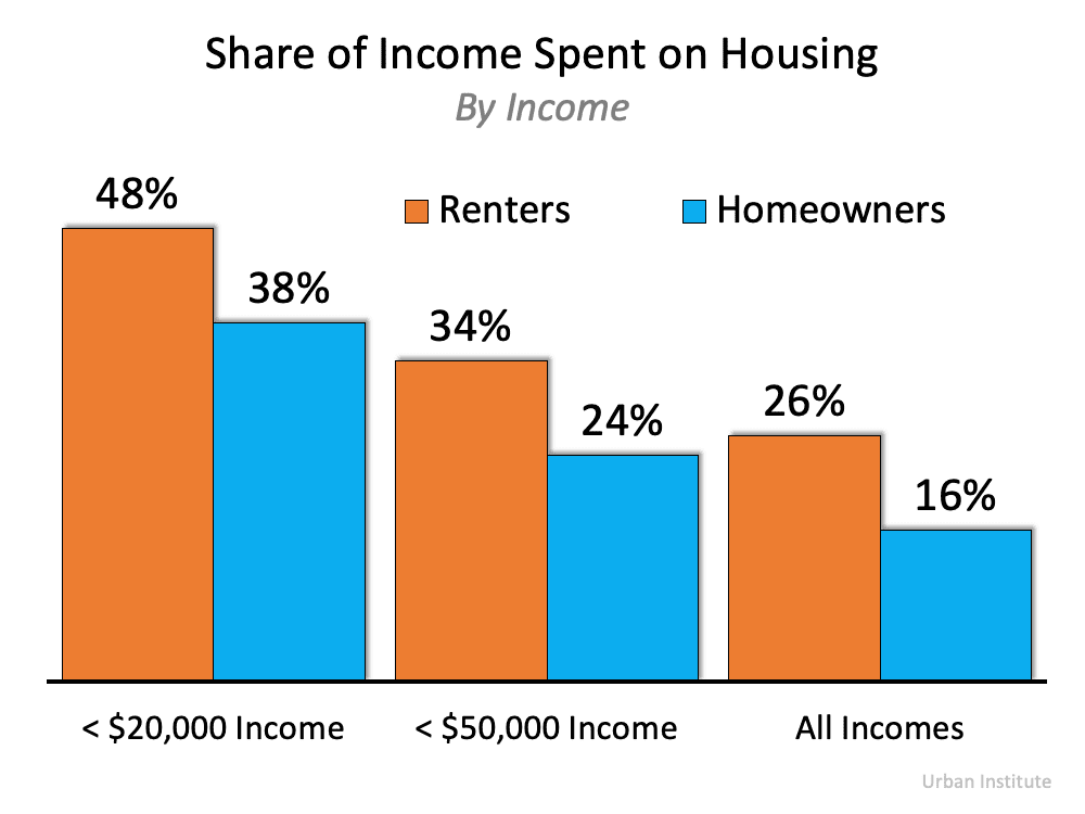1. Renters pay a higher percentage of their income toward their rental payment than homeowners pay toward their mortgage.