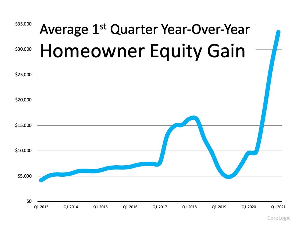 The record-setting increases in home prices over the last two years dramatically improved homeowners’ equity. The graph below uses data from CoreLogic to show the average home equity gain in the first quarter of the last nine years: